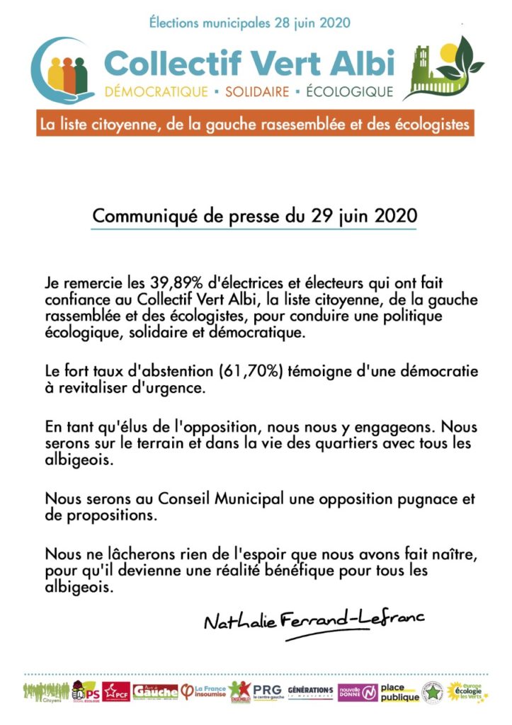 Communiqué de presse du 30/06/20